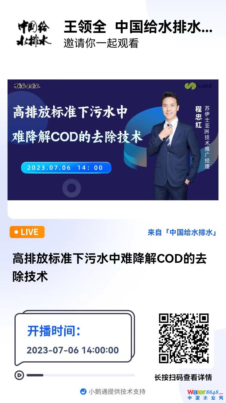 今天直播的主題為: 高排放標準下污水中難降解COD的去除技術(shù)