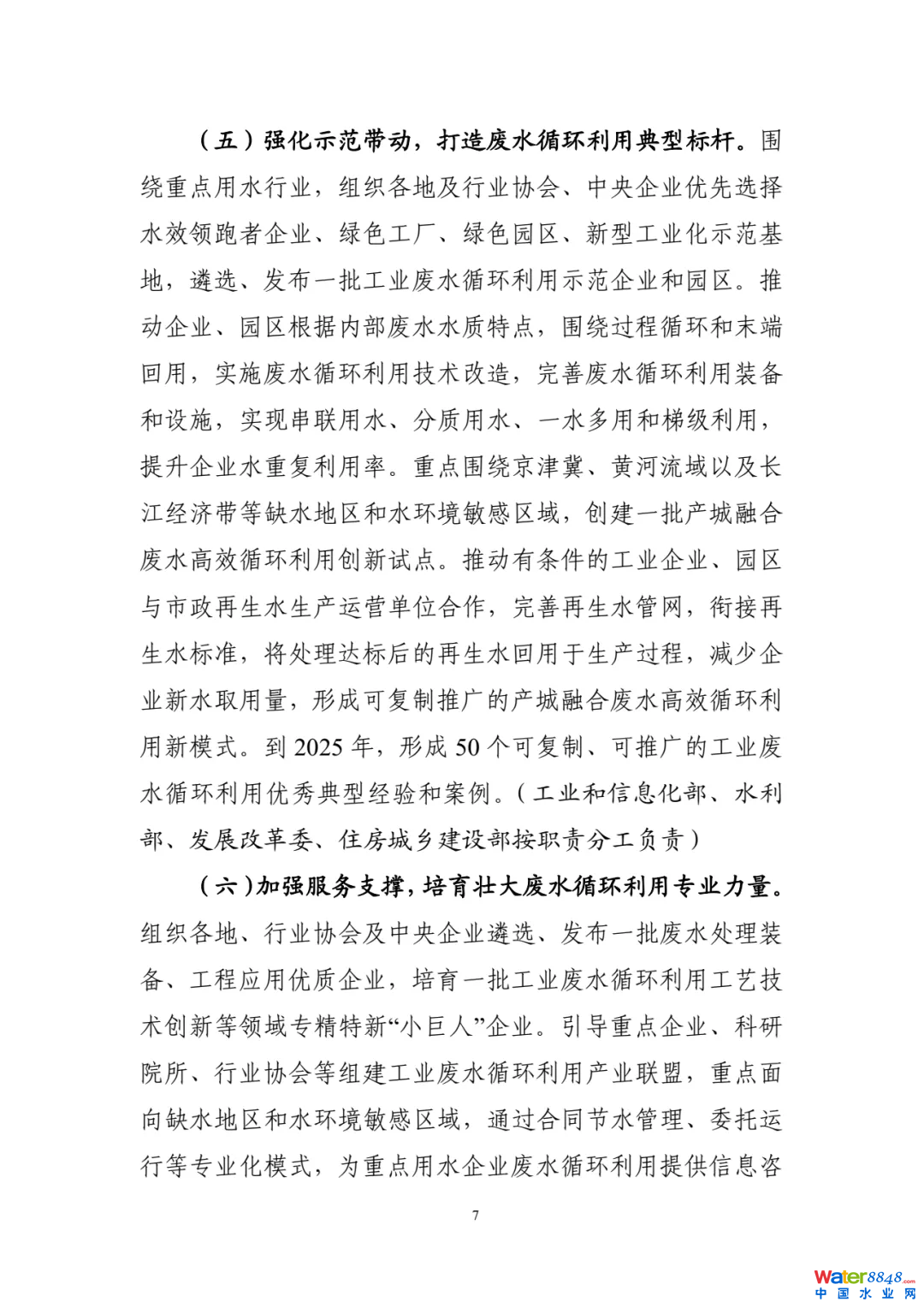 工業(yè)和信息化部 國(guó)家發(fā)展改革委 科技部 生態(tài)環(huán)境部 住房城鄉(xiāng)建設(shè)部 水利部關(guān)于印發(fā)工業(yè)廢水循環(huán)利用實(shí)施方案的通知
