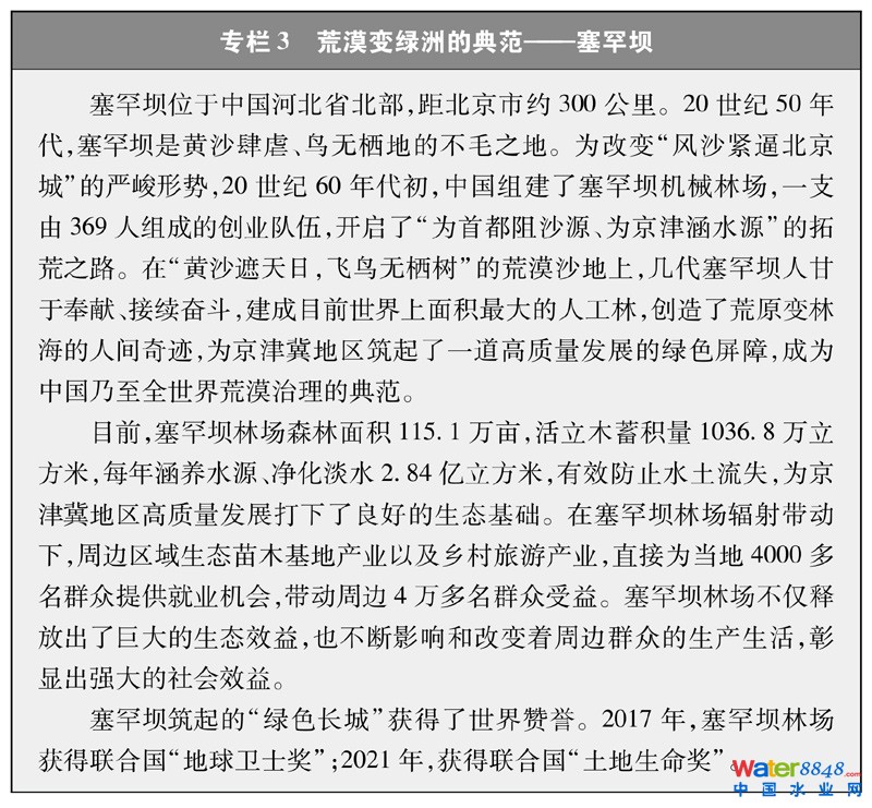 實(shí)施重要生態(tài)系統(tǒng)保護(hù)和修復(fù)重大工程。以國(guó)家重點(diǎn)生態(tài)功能區(qū)、生態(tài)保護(hù)紅線、自然保護(hù)地等為重點(diǎn),啟動(dòng)實(shí)施山水林田湖草沙一體化保護(hù)和修復(fù)工程,統(tǒng)籌推進(jìn)系統(tǒng)治理、綜合治理、源頭治理。陸續(xù)實(shí)施三北、長(zhǎng)江等防護(hù)林和天然林保護(hù)修復(fù)、退耕還林還草、礦山生態(tài)修復(fù)、“藍(lán)色海灣”整治行動(dòng)、海岸帶保護(hù)修復(fù)、渤海綜合治理攻堅(jiān)戰(zhàn)、紅樹(shù)林保護(hù)修復(fù)等一批具有重要生態(tài)影響的生態(tài)環(huán)境修復(fù)治理工程,科學(xué)開(kāi)展大規(guī)模國(guó)土綠化行動(dòng),推動(dòng)森林、草原、濕地、河流、湖泊面積持續(xù)增加,土地荒漠化趨勢(shì)得到有效扭轉(zhuǎn)。2012-2021年,中國(guó)累計(jì)完成造林9.6億畝,防沙治沙2.78億畝,種草改良6億畝,新增和修復(fù)濕地1200多萬(wàn)畝。2021年,中國(guó)森林覆蓋率達(dá)到24.02%,森林蓄積量達(dá)到194.93億立方米,森林覆蓋率和森林蓄積量連續(xù)30多年保持“雙增長(zhǎng)”,是全球森林資源增長(zhǎng)最多和人工造林面積最大的國(guó)家。中國(guó)在世界范圍內(nèi)率先實(shí)現(xiàn)了土地退化“零增長(zhǎng)”,荒漠化土地和沙化土地面積“雙減少”,對(duì)全球?qū)崿F(xiàn)2030年土地退化零增長(zhǎng)目標(biāo)發(fā)揮了積極作用。自2000年以來(lái),中國(guó)始終是全球“增綠”的主力軍,全球新增綠化面積中約1/4來(lái)自中國(guó)。