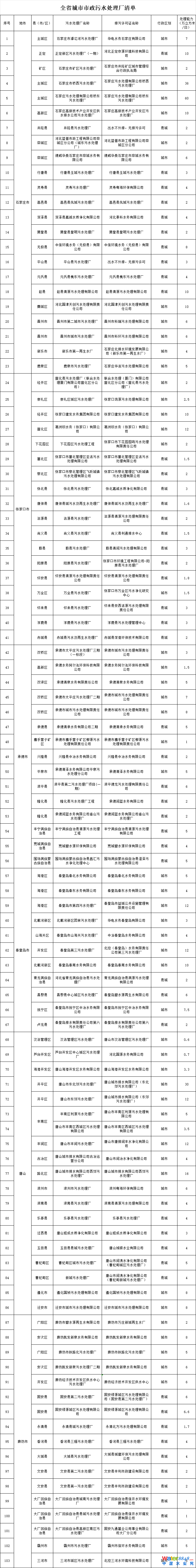 關(guān)于印發(fā)全省城市市政污水處理廠清單的通知