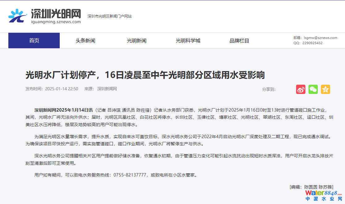 智慧水務(wù)賦能 光明水廠高效完成管道碰口_深圳新聞網(wǎng)