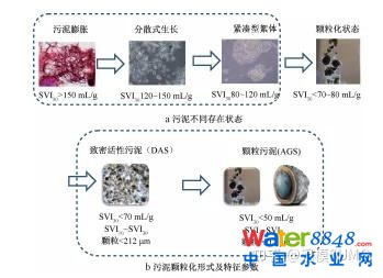 傳統(tǒng)活性污泥法受限于污泥絮體松散、沉淀性能差及污泥比重小等缺欠,進(jìn)一步提升處理效率改善運(yùn)行性能存在技術(shù)瓶頸。構(gòu)建高致密高聚集態(tài)生化反應(yīng)器、提升單位生化池池容內(nèi)持留活性微生物的數(shù)量和種群多樣性,提高活性微生物聚集體的密度并進(jìn)一步改善污泥沉淀性能(見(jiàn)圖8),這是未來(lái)污水處理發(fā)展尤其是生化反應(yīng)器開(kāi)發(fā)的重要發(fā)展趨勢(shì),這樣反應(yīng)器將更加高效和集約、減少占地。