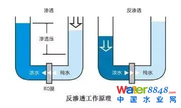 反滲透設(shè)備中由于膜元件的給水端與濃水端之間存在壓力差即膜壓降,又因每只元件的濃水含鹽量均高于給水含鹽量,故每只元件的給水滲透壓沿系統(tǒng)流程不斷上升。