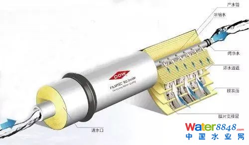 RO膜能夠很好地脫除離子和有機物,反滲透膜比納濾膜有更高的脫除率,反滲透通常能脫除給水中99%的鹽份,進水中的有機物的脫除率≥99%。
