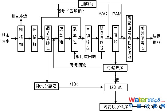 1、背景 平陰縣第三污水處理廠污水處理采用“一級(jí)處理+生物轉(zhuǎn)盤+MBBR池+活性砂濾池+紫外消毒”的處理工藝,污泥處理采用帶式濃縮脫水一體機(jī)處理,根據(jù)工程實(shí)施規(guī)劃,平陰縣第三污水處理廠總規(guī)模為600